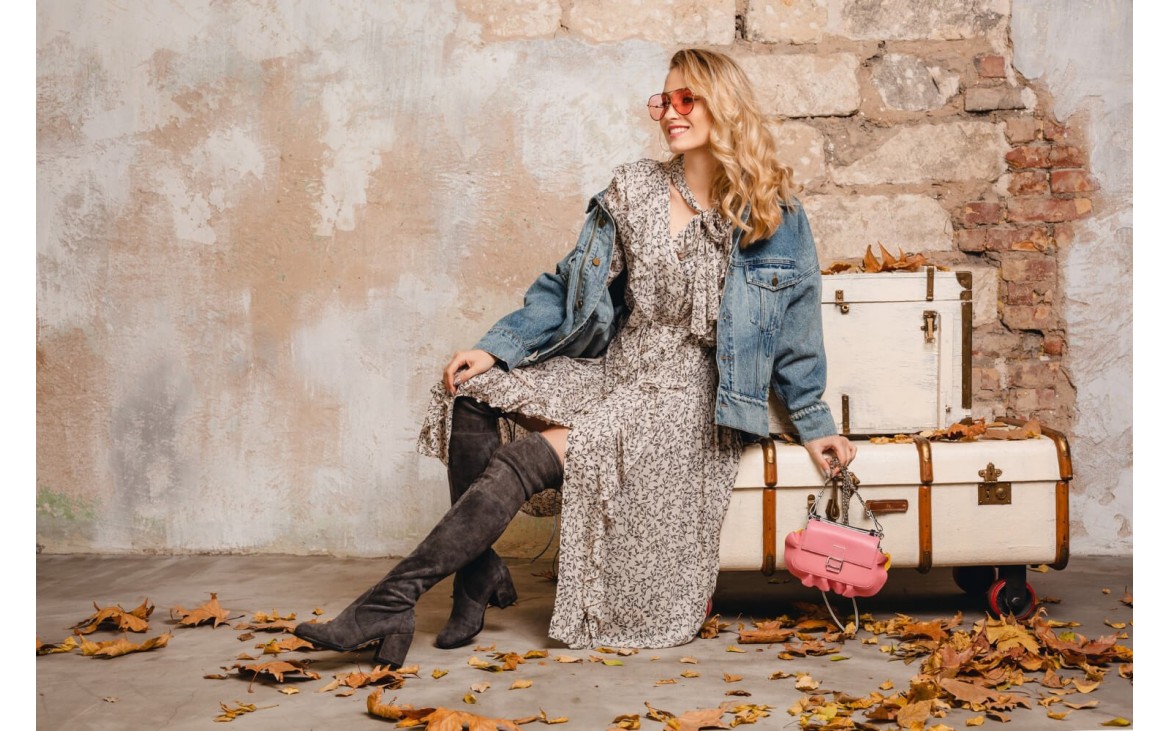 Denimul este tesatura it a sezonului, ceea ce face o varianta de tendinta pentru o tinuta cu cizme pana la coapsa. Imbina simplitatea si dramatismul imbinand cizmele tale cu un tricou si o fusta midi din denim pentru un aspect fara efort, dar neasteptat.